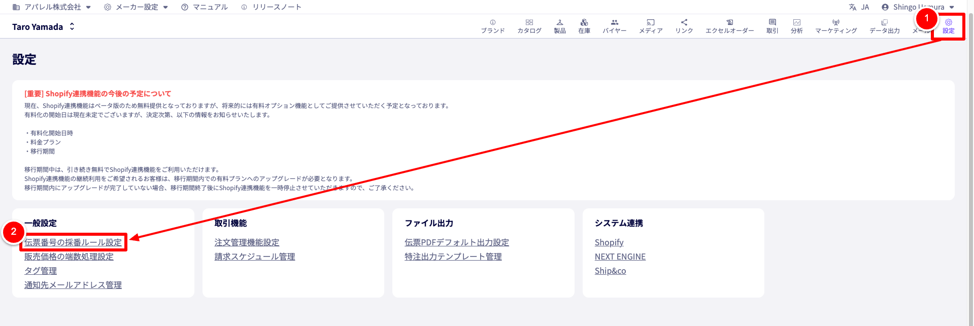 伝票番号の採番ルールは、「メンバー/管理者」以上のメンバーのみ設定できます。