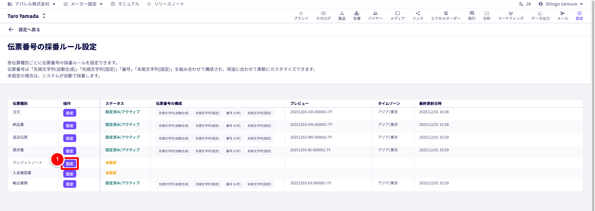 採番ルールは、設定を有効化した後に発行される取引伝票に対して適用されます。